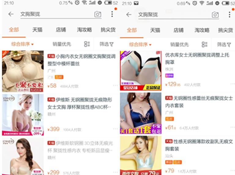 第二:搜索出的产品和关键词是完全吻合的,搜索“文胸”出来的一定是文胸,而不是其他和文胸相关的产品;