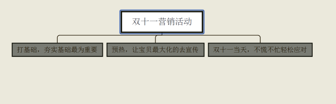 整个双十一营销计划表中我们可以把活动分成三个部分: