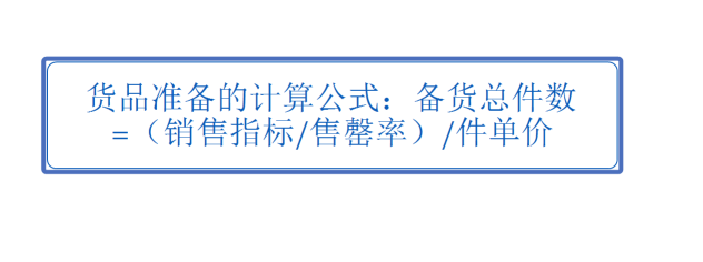 货品准备的计算公式:备货总件数=(销售指标/售罄率)/件单价